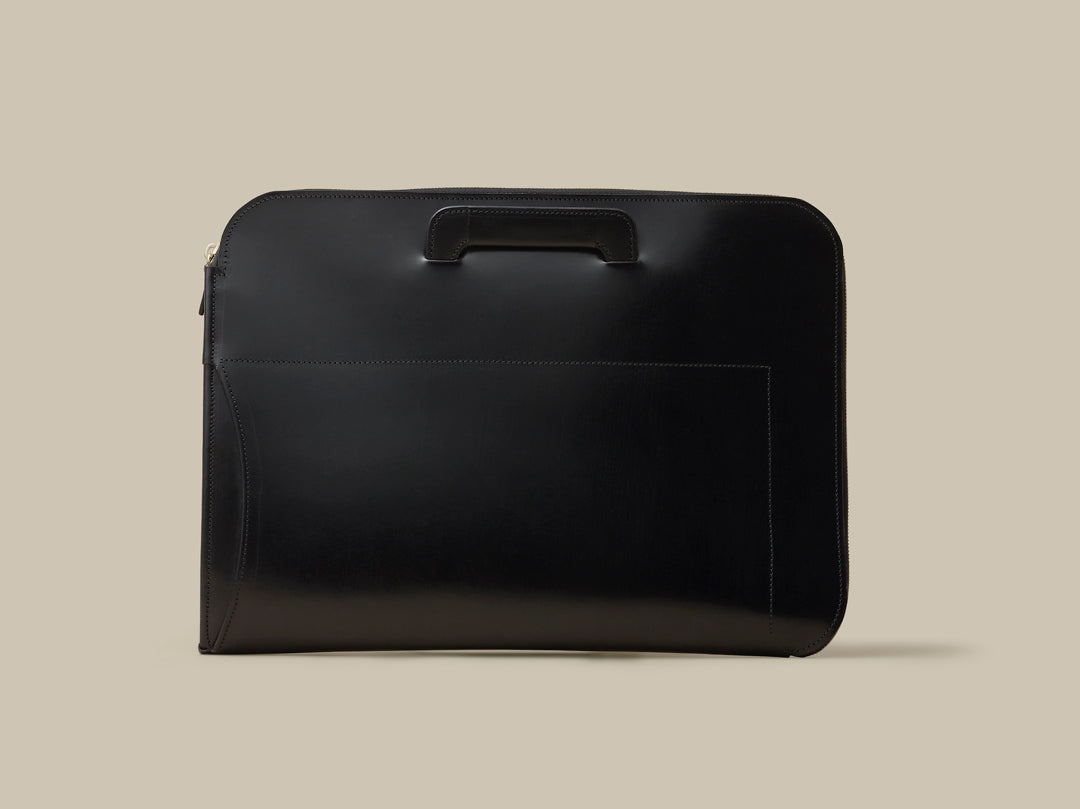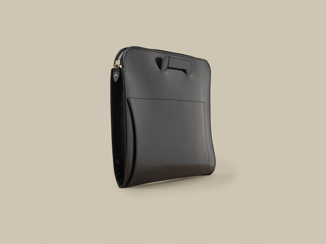 Our retractable handle portfolio featuring newspaper holder with suede lining. This practical and timeless portfolio in the finest English bridle leather has retractable